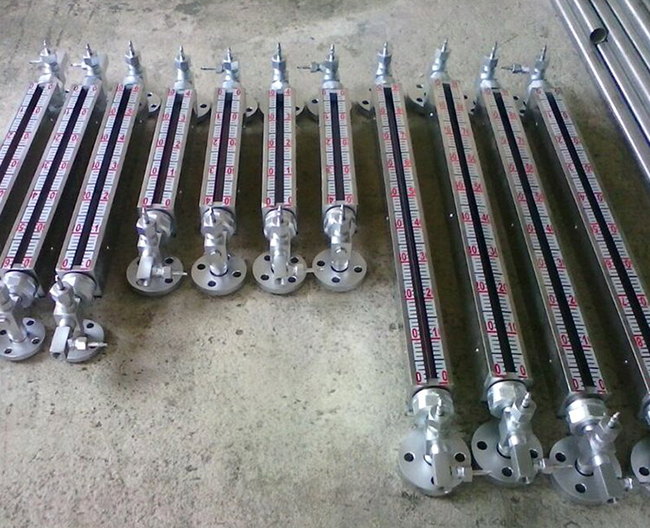 儀表在上下閥上都裝法蘭連接,使保持法蘭表面光潔,通過(guò)法蘭與容器連接構(gòu)成連通器,透過(guò)玻璃板或玻璃管,可直接讀得容器內(nèi)液位的高度。