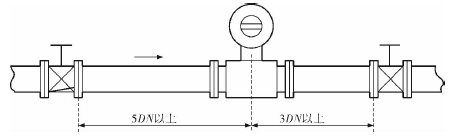 管道熱水流量計(jì)的安裝質(zhì)量對(duì)其測(cè)量結(jié)果的影響較大,因此在安裝時(shí)需要注意幾個(gè)問(wèn)題。*先,管道熱水流量計(jì)直管段的選擇在配管時(shí)一定要按照要求進(jìn)行選擇,一般選擇流量計(jì)通徑與工藝管道通徑相同,即可滿足工程需要,而且安裝方便、壓力損失小,流量計(jì)直管段上游側(cè)的長(zhǎng)度不少于5倍工藝管道直徑,下游側(cè)的長(zhǎng)度不少于3倍工藝管道直徑(圖2)。但在流速太慢而又要求精度較高或需要變徑的應(yīng)用場(chǎng)合,可選擇通徑小于工藝管道通徑的流量計(jì),以提高測(cè)量精度,此時(shí)流量計(jì)上、下游必須加裝異徑管,且進(jìn)口異徑管上游側(cè)應(yīng)有長(zhǎng)于10倍工藝管道直徑的直管段,下游側(cè)應(yīng)有長(zhǎng)于5倍工藝管道直徑的直管段(圖3)。
