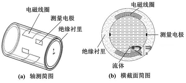 電極與被測(cè)流體通過絕緣管形成檢測(cè)電容,通過此電容來藕合流量信號(hào)。其主要的結(jié)構(gòu)形式按照電極的安裝位置可以分為兩種:電極嵌人測(cè)量管的絕緣襯里內(nèi)部(嵌人式)、電極貼在測(cè)量管外部(外貼式)。嵌入式結(jié)構(gòu)與普通工業(yè)污水流量計(jì)結(jié)構(gòu)相似,而外貼式大多是通過陶瓷表面金屬化技術(shù)將電極貼在測(cè)量管外。