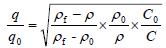 標(biāo)準(zhǔn)狀態(tài)下標(biāo)定的雙氧水管道流量計(jì)的介質(zhì)密度、阻力系數(shù)、體積流量分別用0 、0 C 、q0 表示,則體積流量可表示為
