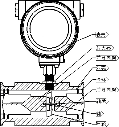 在管道中心安放一個(gè)渦輪,兩端由軸承支撐。當(dāng)流體通過(guò)管道時(shí),沖擊渦輪流量計(jì)葉片,對(duì)渦輪流量計(jì)產(chǎn)生驅(qū)動(dòng)力矩,使渦輪流量計(jì)克服摩擦力矩和流體阻力矩而產(chǎn)生旋轉(zhuǎn)。在一定的流量范圍內(nèi),對(duì)一定的流體介質(zhì)粘度,渦輪流量計(jì)的旋轉(zhuǎn)角速度與流體流速成正比。由此,流體流速可通過(guò)渦輪流量計(jì)的旋轉(zhuǎn)角速度得到,從而可以計(jì)算得到通過(guò)管道的流體流量。