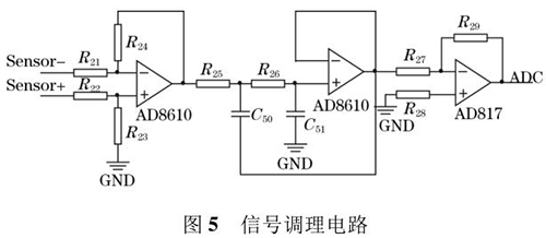 信號(hào)調(diào)理電路原理圖如圖 4 所示。