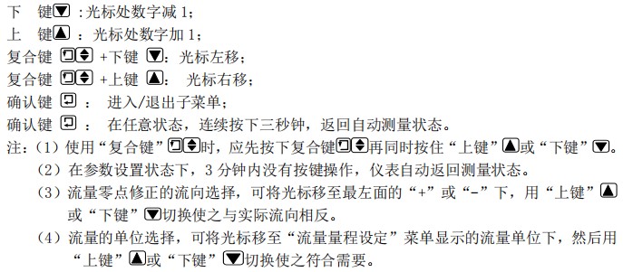 注意:儀表用 5 位有效數(shù)字顯示流量值,末位數(shù)值的后面顯示有流量的單位