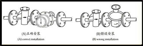 3、流量計殼體上箭頭指向應與被安裝管道的液體流動方向一致。